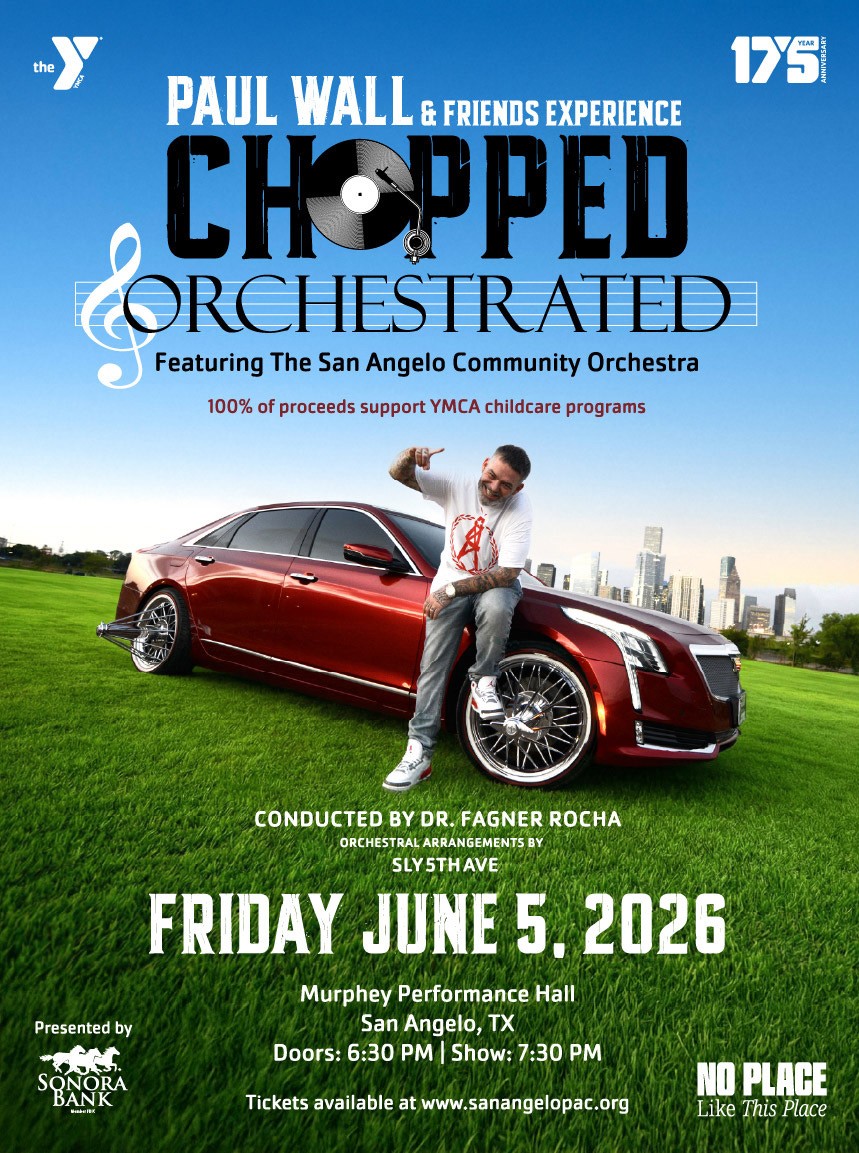 Join Texas hip-hop icon Paul Wall and special guests for Chopped & Orchestrated: A Paul Wall & Friends Experience, a bold, one-night-only performance blending Southern rap and R&B with the power and elegance of a live orchestra. Backed by the San Angelo Community Orchestra under the direction of Dr. Fagner Rocha, this cinematic concert transforms iconic Texas sound into an unforgettable symphonic experience inside the Murphey Performance Hall.